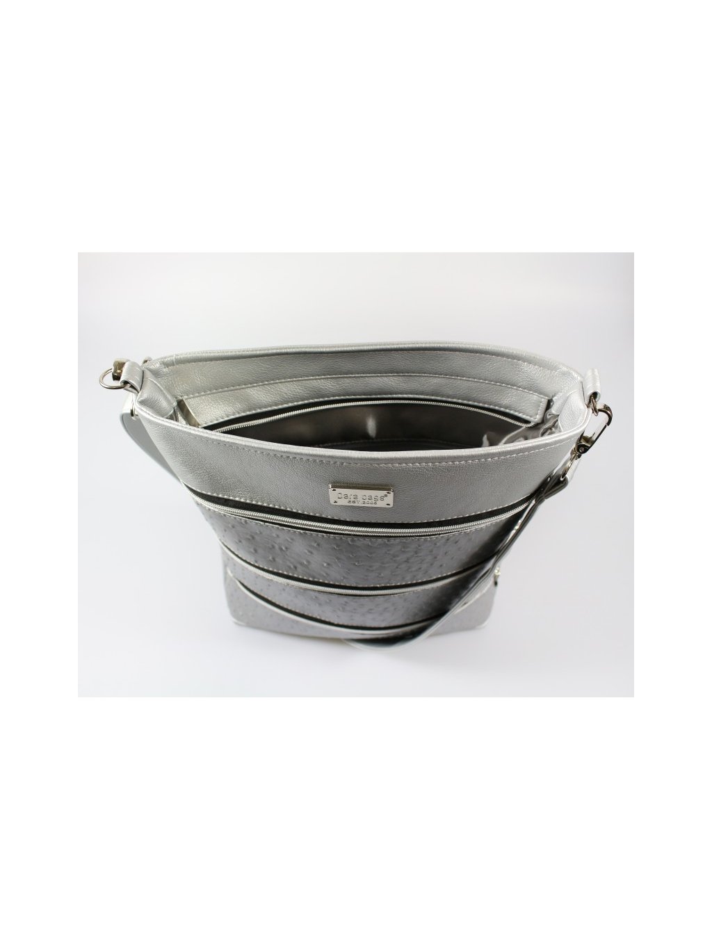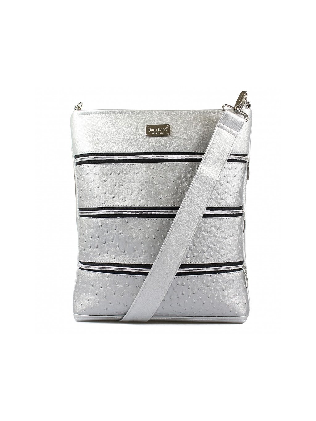 Díky třem kapsám na předním díle budete mít v tašce pořádek. Vnitřní prostor vybaven další kapsičkou na zip s karabinkou na klíče.